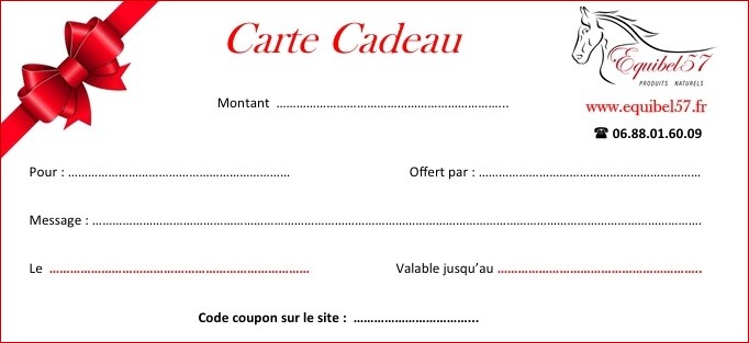 Offrez une carte cadeau Equibel57 pour être sûr de faire plaisir aux cavaliers qui aiment prendre soin de leurs chevaux et leur offrir le meilleur !