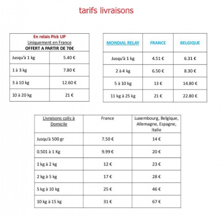 Sous forme de granulés en pot d’1,2 kg, en sac de 4,8 kg et de 20 kg. Fabriqué en France